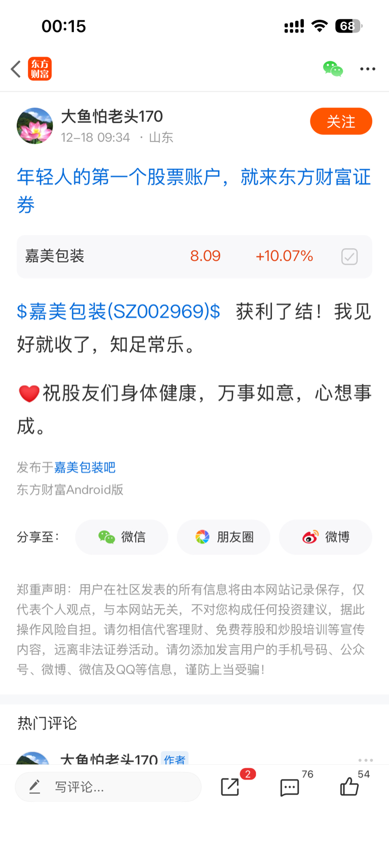 温馨提示: 1.根据《证券法》规定,禁止编造、传播虚假信息或者误导性信息,扰乱证券市场;2.用户在本社区发表的所有资料、言论等仅代表个人观点,与本网站立场无关,不对您构成任何投资建议。用户应基于自己的独立判断,自行决定证券投资并承担相应风险。《东方财富社区管理规定》