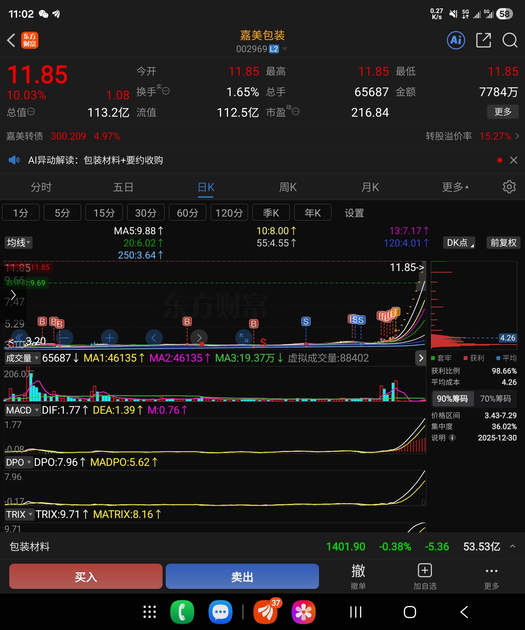 $嘉美包装(SZ002969)$ 一股不卖
