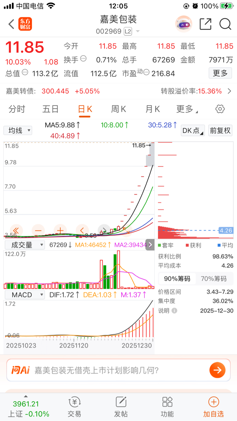 $嘉美包装(SZ002969)$ 主力吃独食会拉肚子。#炒股日记# #复盘记录# #强势机会# #投资干货#