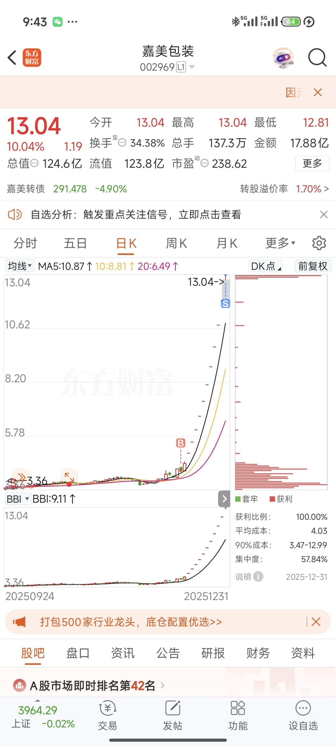$嘉美包装(SZ002969)$ 落袋为安,近期会有调整,长期看好,还会再来。