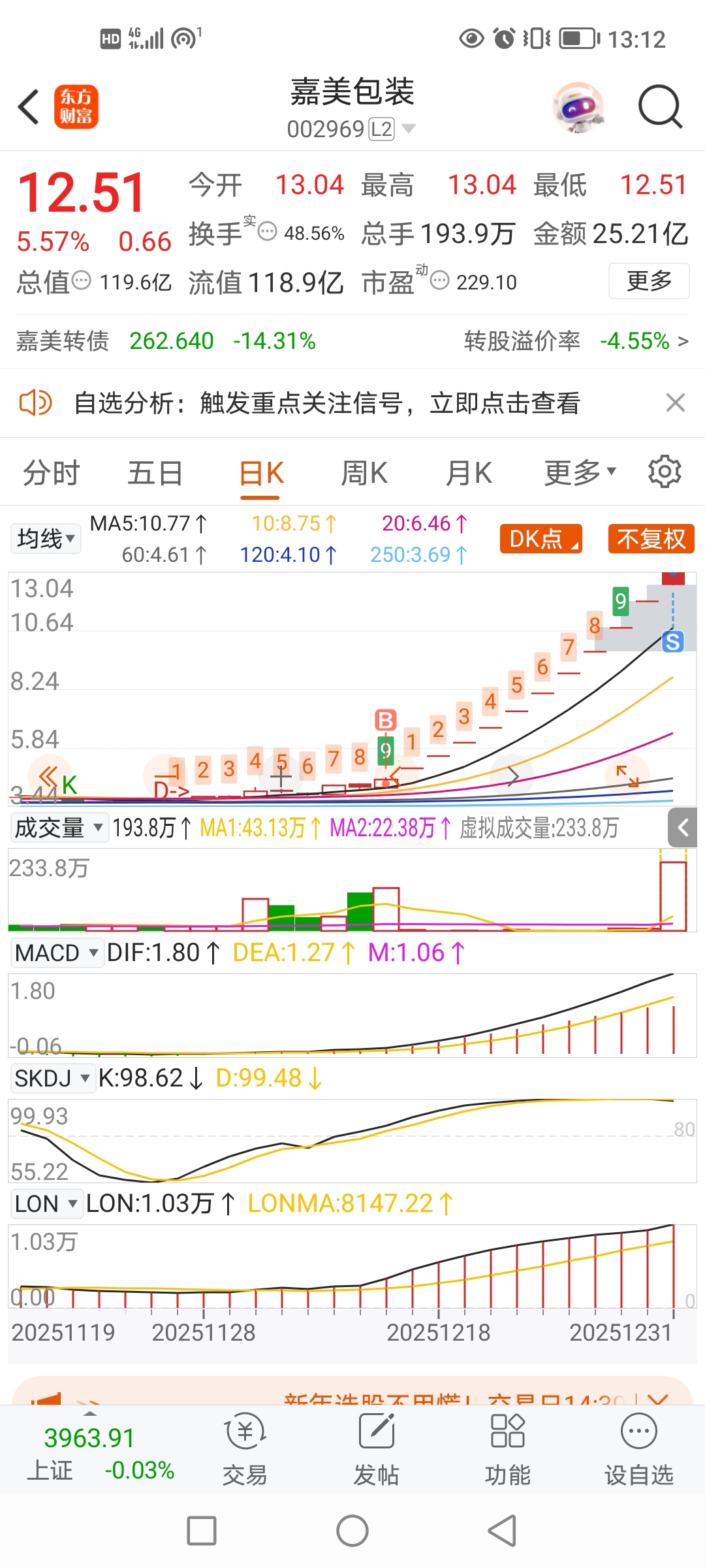 $嘉美包装(SZ002969)$ 感谢俞总和各路主力,虽然只有3层仓7个达不溜,也万分感谢!祝俞总和主力身体健康!事业蒸蒸日上!