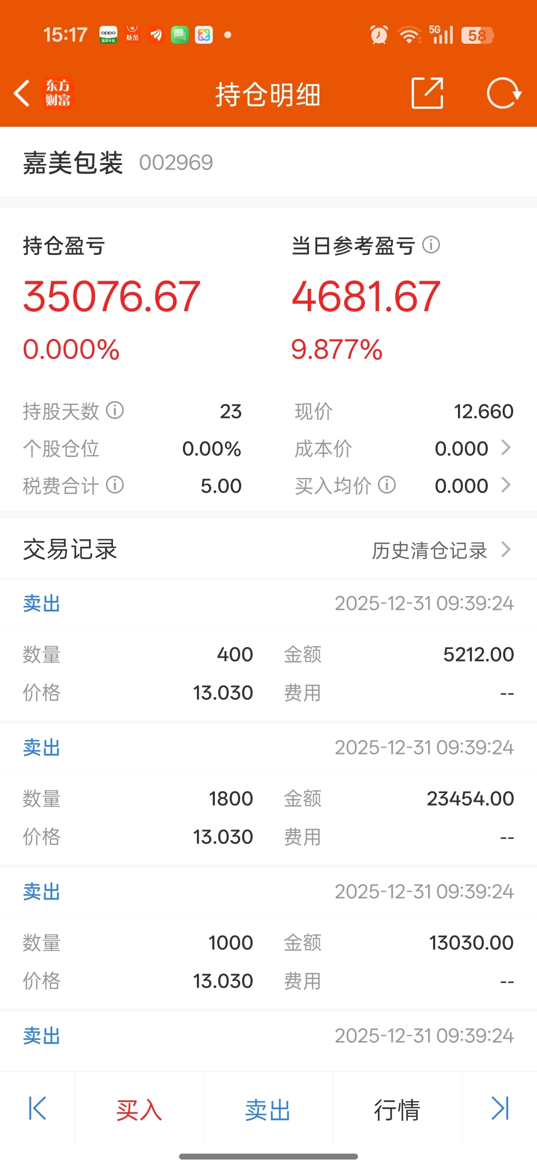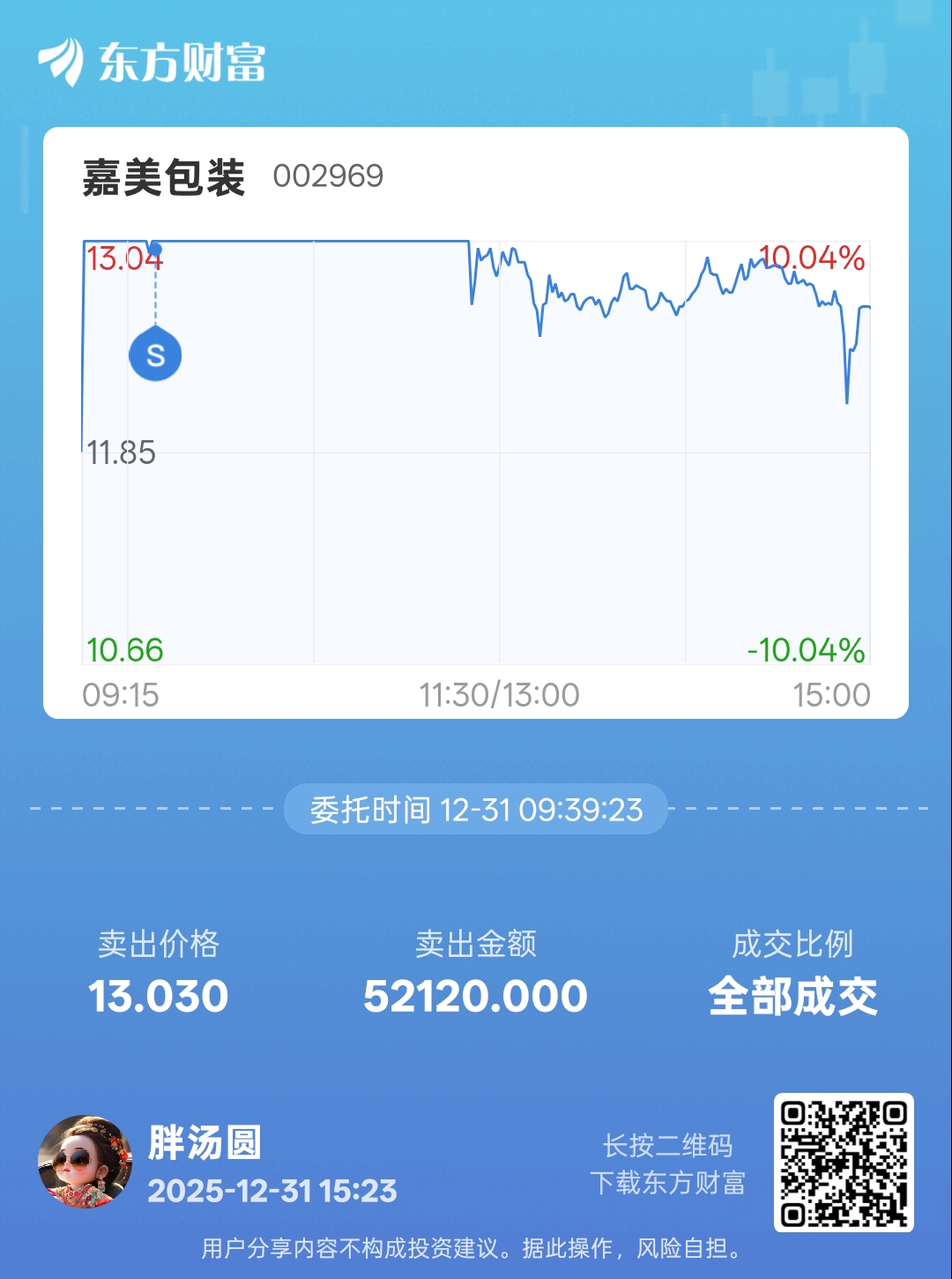 $嘉美包装(SZ002969)$ 糊涂买进,开板立即卖出,这是踏入股市以来盈利最多的一支股