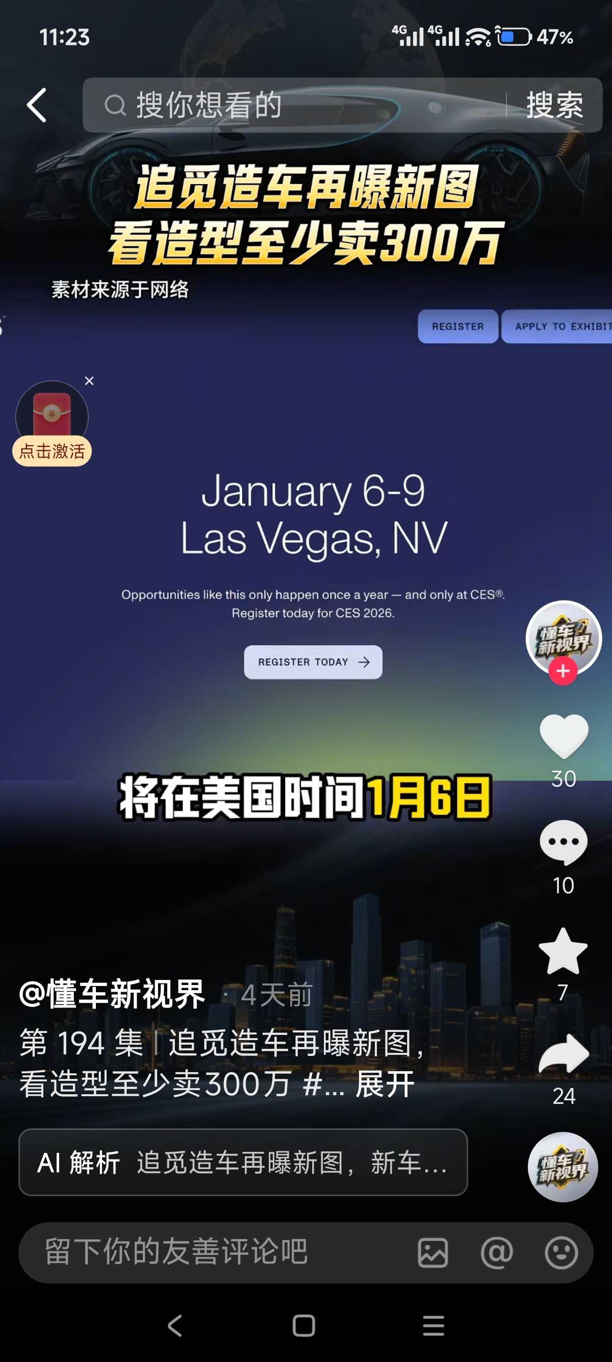 追觅公司将在美国时间1月6日首发超跑