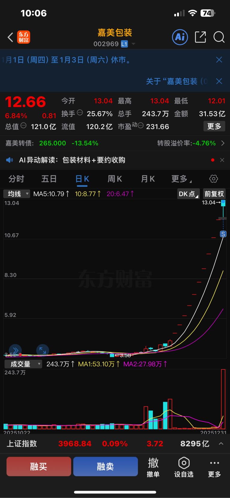 $嘉美包装(SZ002969)$ 还有些底仓尾盘忘记卖了,转债溢价率摆在那呢,周一绿5个点开盘跑不掉了,至于后面怎么走就看资金流向了