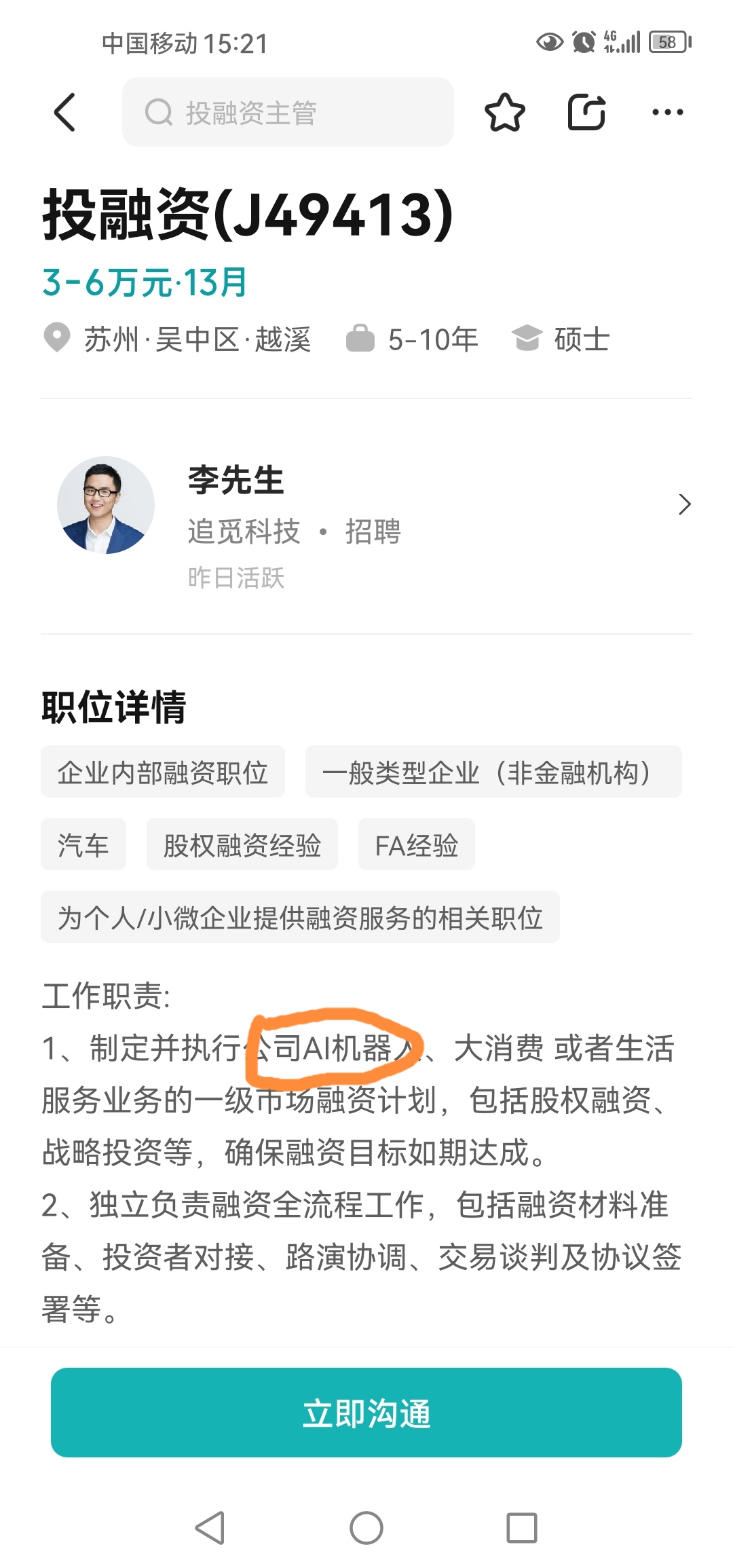 惊天消息:追觅已经在招聘人形机器人的一级市场投融资经理!凡是再散布家电清洁机的都