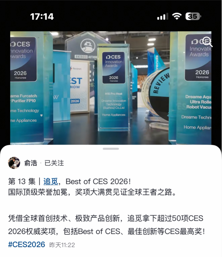 2026ces全球科技展最火的公司是不是追觅,得奖者最多的是不是追觅,世界第一是
