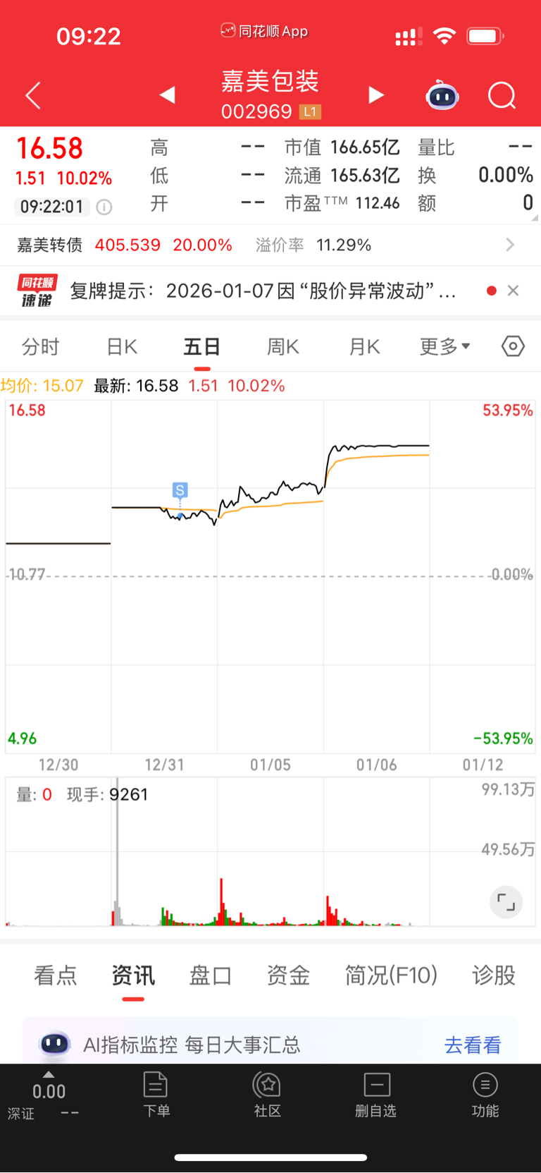 $嘉美包装(SZ002969)$ 难过的很