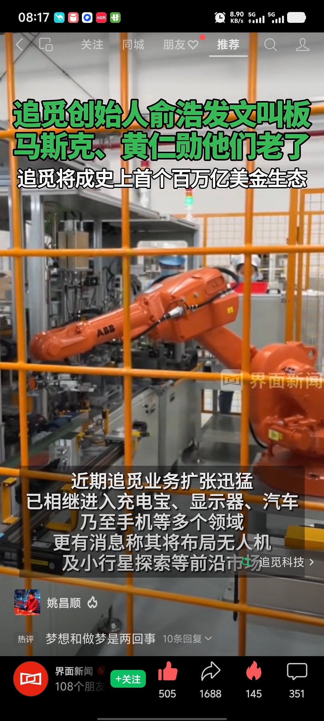 追觅科技俞浩发朋友圈,说追觅将成为100万亿美金级的生态