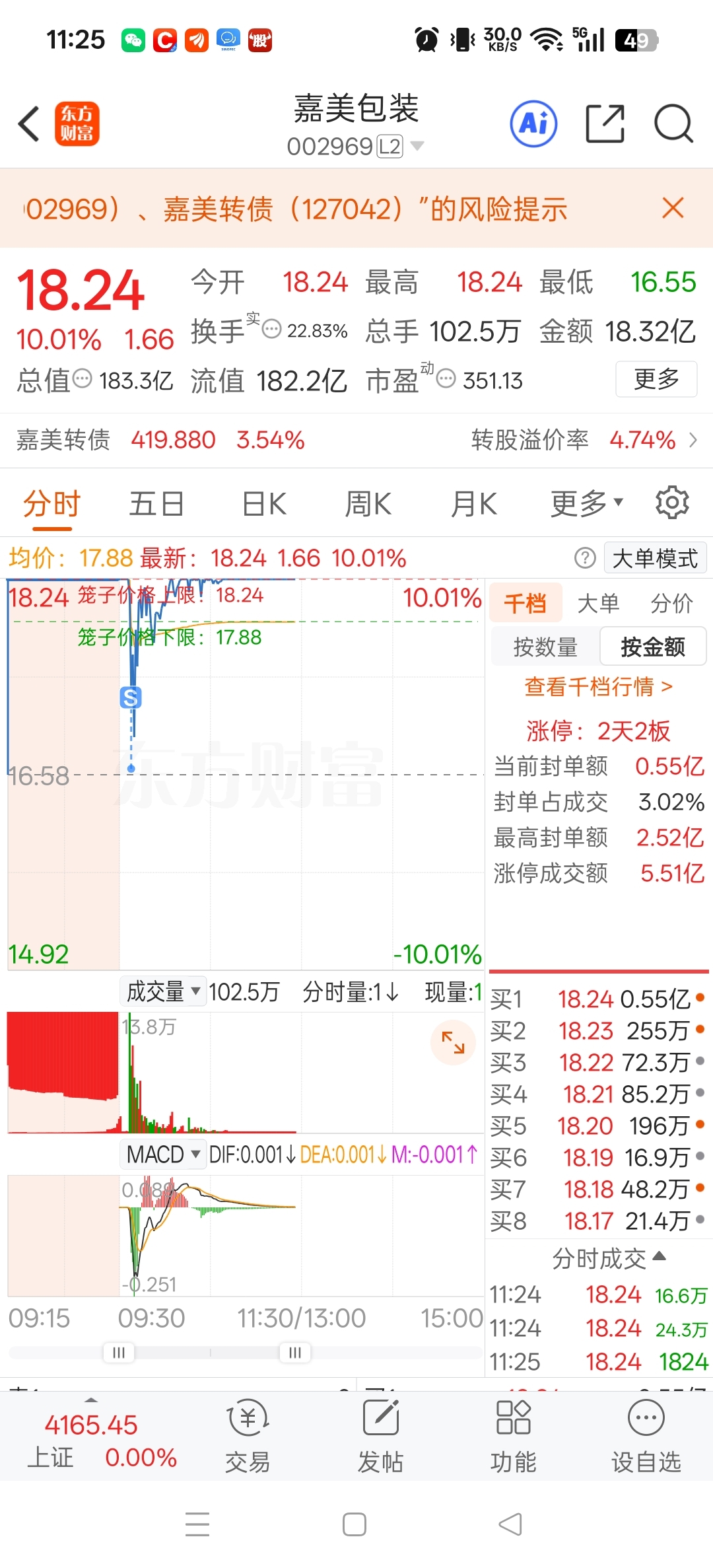 $嘉美包装(SZ002969)$ 哪怕多等一秒也不会错过啊。被吓出来了