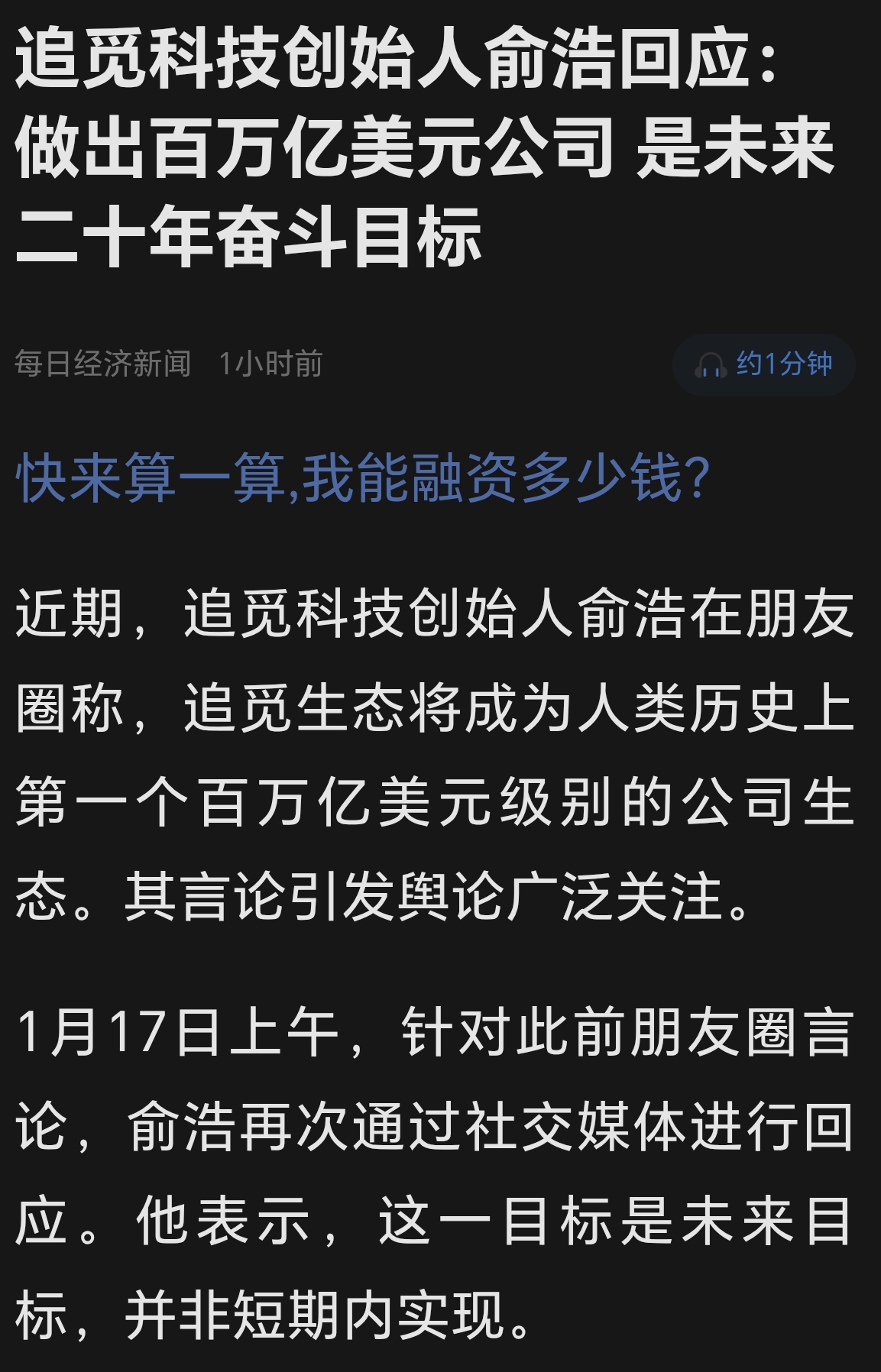 追觅科技已经借壳,追觅嘉美是百万亿美元级别的公司,周一就是一字涨停机构入场,黑钩