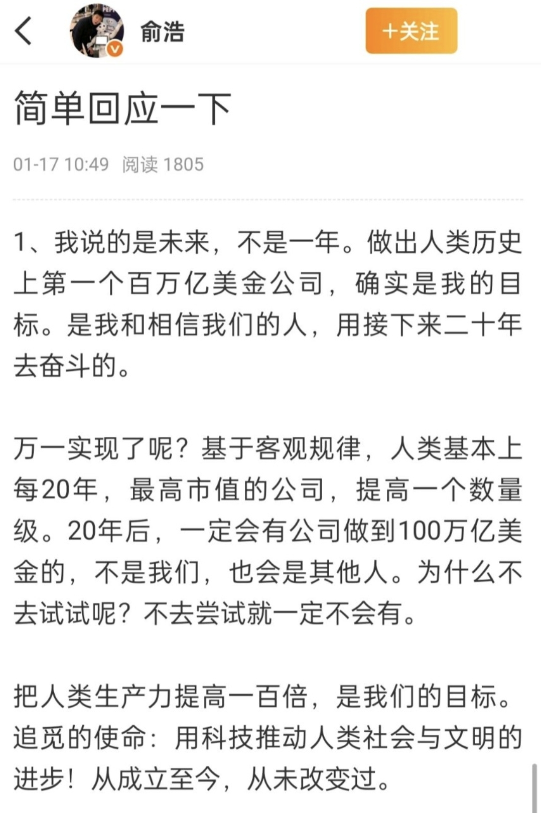 另外俞浩快点把余大嘴挖来,大嘴做联席CEO负责汽车业务板块,光汽车板块就能短期达到5000亿市值