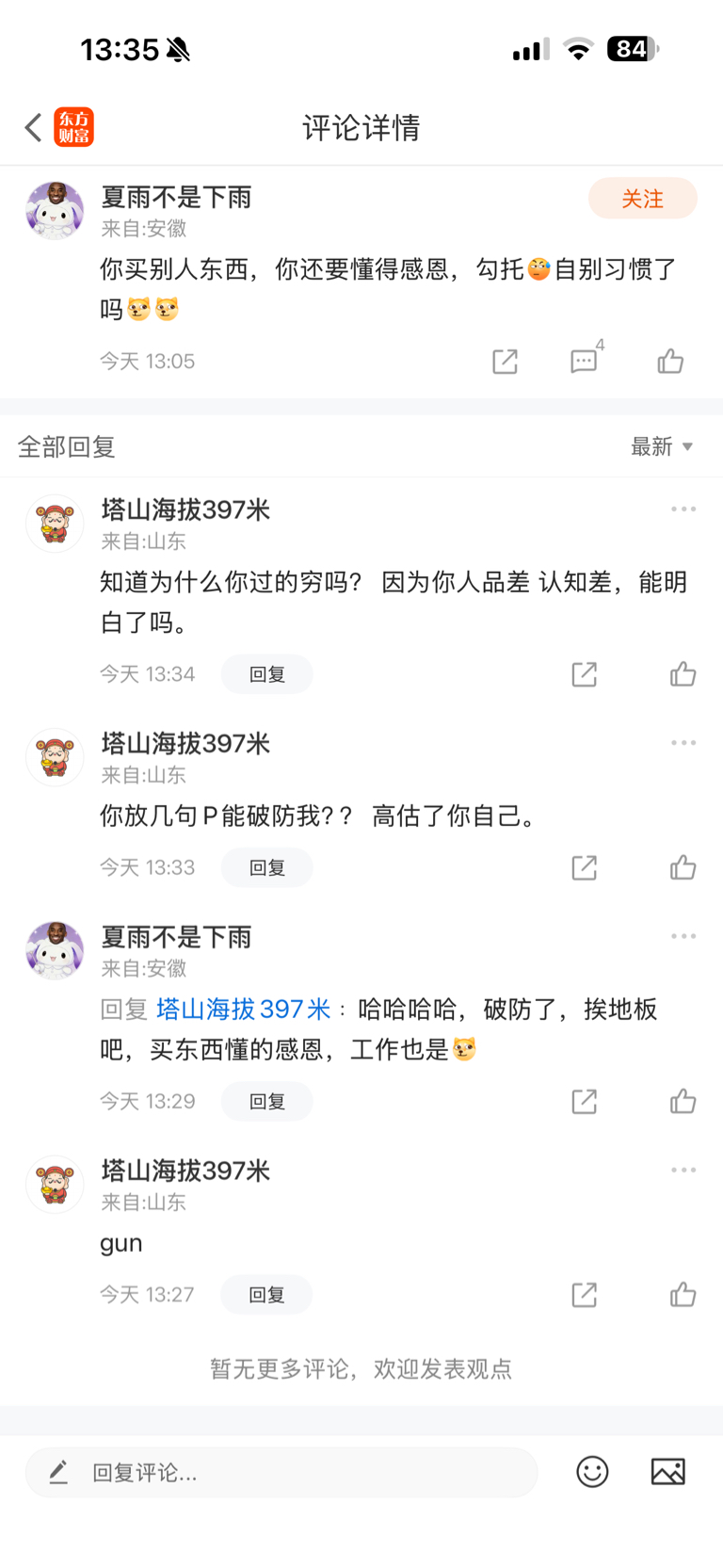 温馨提示: 1.根据《证券法》规定,禁止编造、传播虚假信息或者误导性信息,扰乱证券市场;2.用户在本社区发表的所有资料、言论等仅代表个人观点,与本网站立场无关,不对您构成任何投资建议。用户应基于自己的独立判断,自行决定证券投资并承担相应风险。《东方财富社区管理规定》