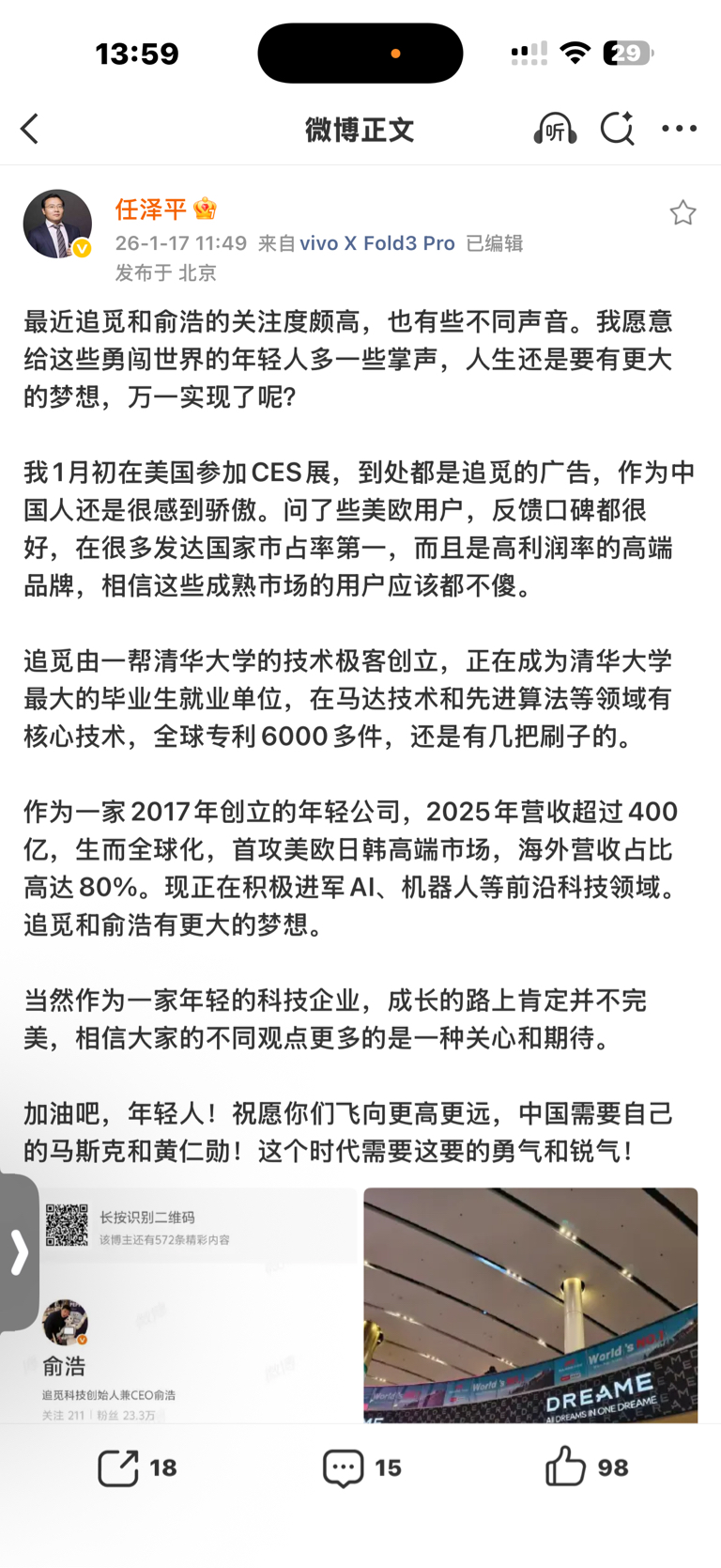 我在任泽平微博下留言:兄弟,俞浩不是万一实现,是已经实现了。
