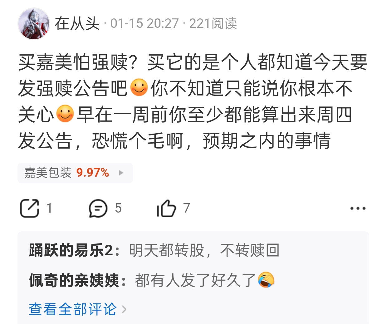 温馨提示: 1.根据《证券法》规定,禁止编造、传播虚假信息或者误导性信息,扰乱证券市场;2.用户在本社区发表的所有资料、言论等仅代表个人观点,与本网站立场无关,不对您构成任何投资建议。用户应基于自己的独立判断,自行决定证券投资并承担相应风险。《东方财富社区管理规定》