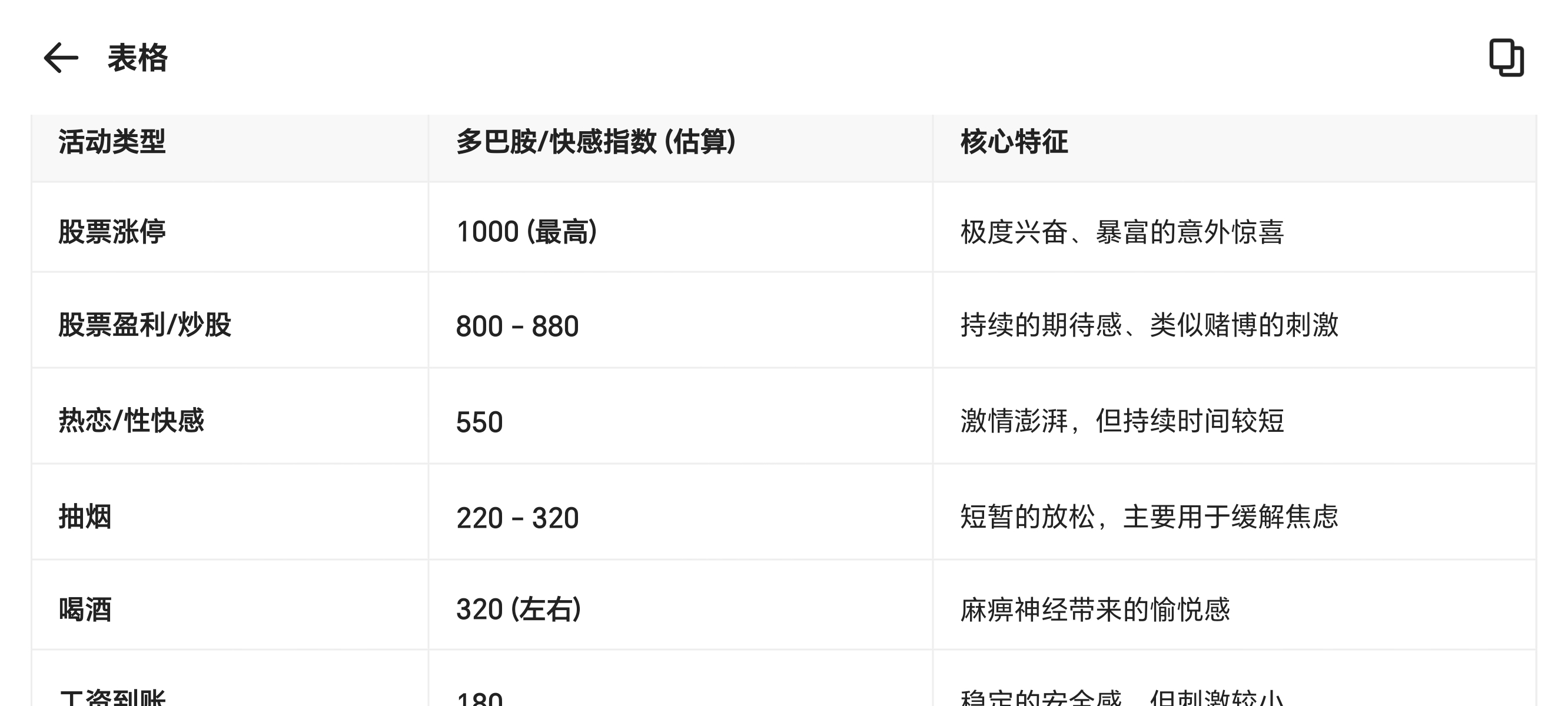 股票涨停,释放多巴胺带来的快感。超过喝酒、抽烟、恋爱、发工资。