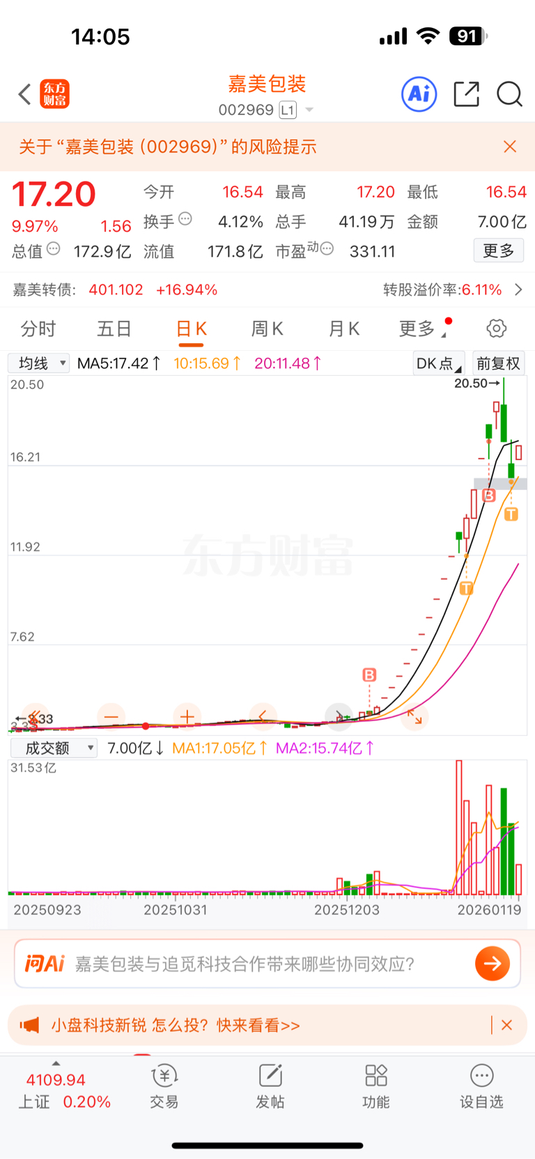 $嘉美包装(SZ002969)$ 本钱已出来,随便涨跌,长期拿着了。