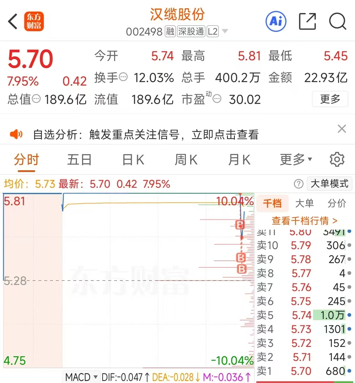昨天随便买。。。$汉缆股份(SZ002498)$