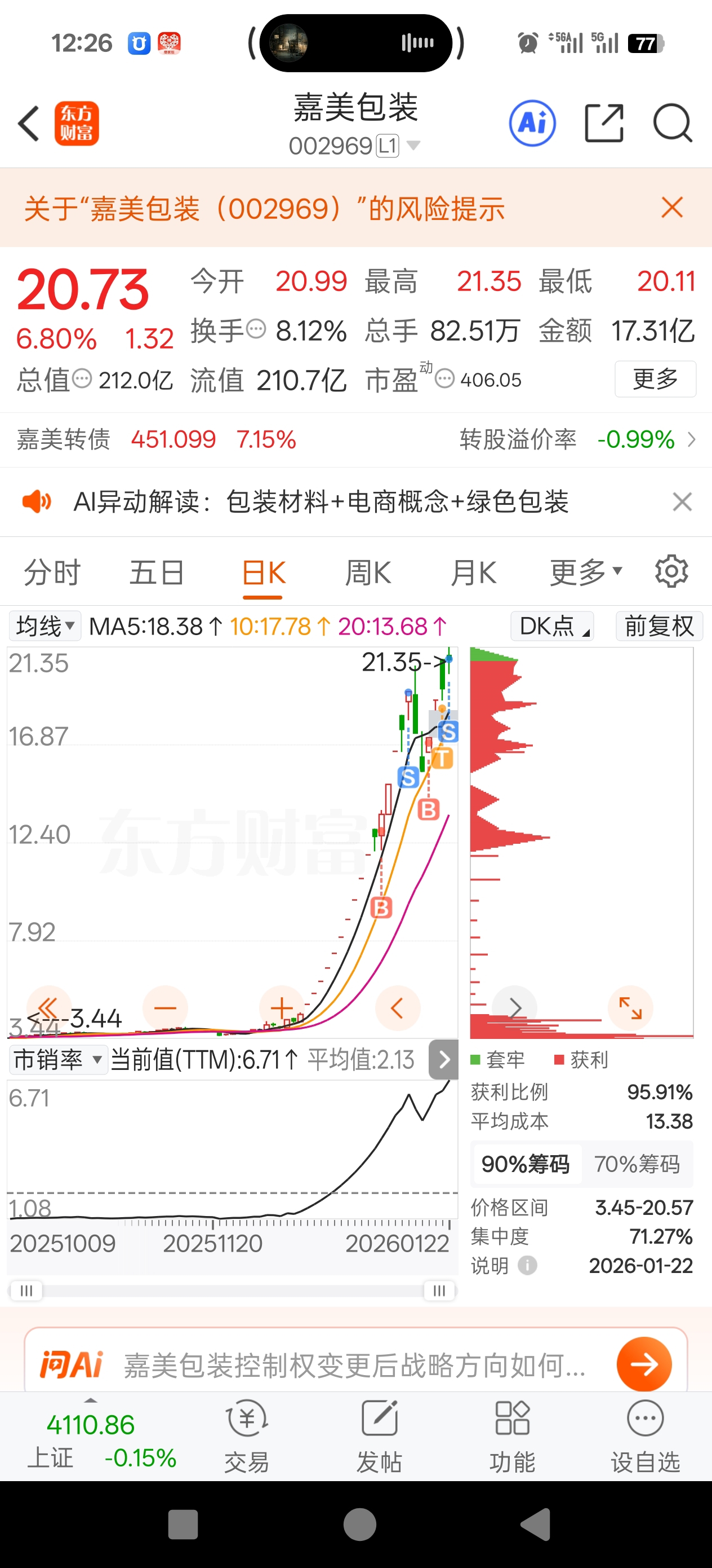 $嘉美包装(SZ002969)$ 今天全清了先出来,明天超预期表现在接回来,来回吃了2波了感谢