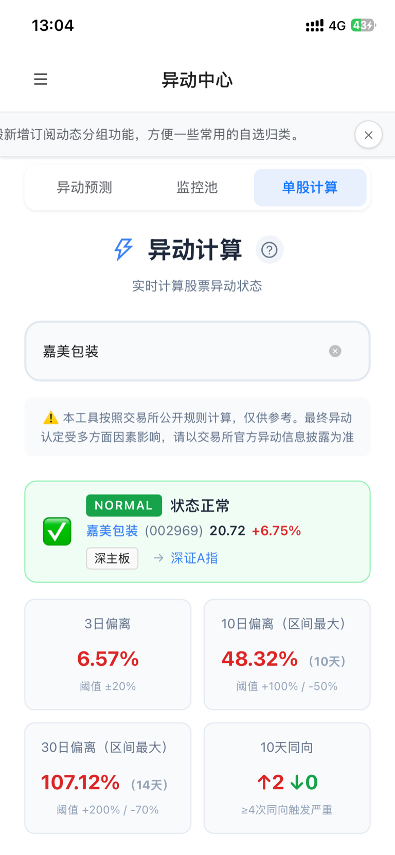 $嘉美包装(SZ002969)$ 今天不会异动,但最好也别涨停