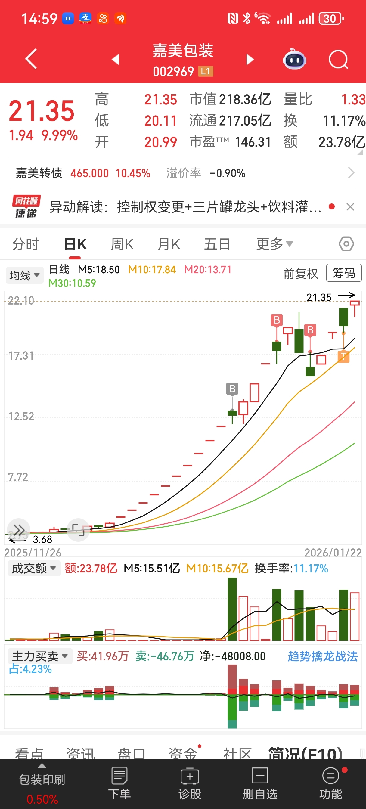 $嘉美包装(SZ002969)$ 还有谁11天了