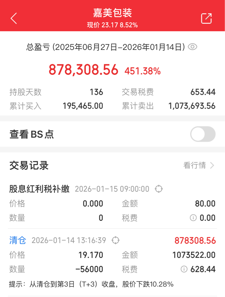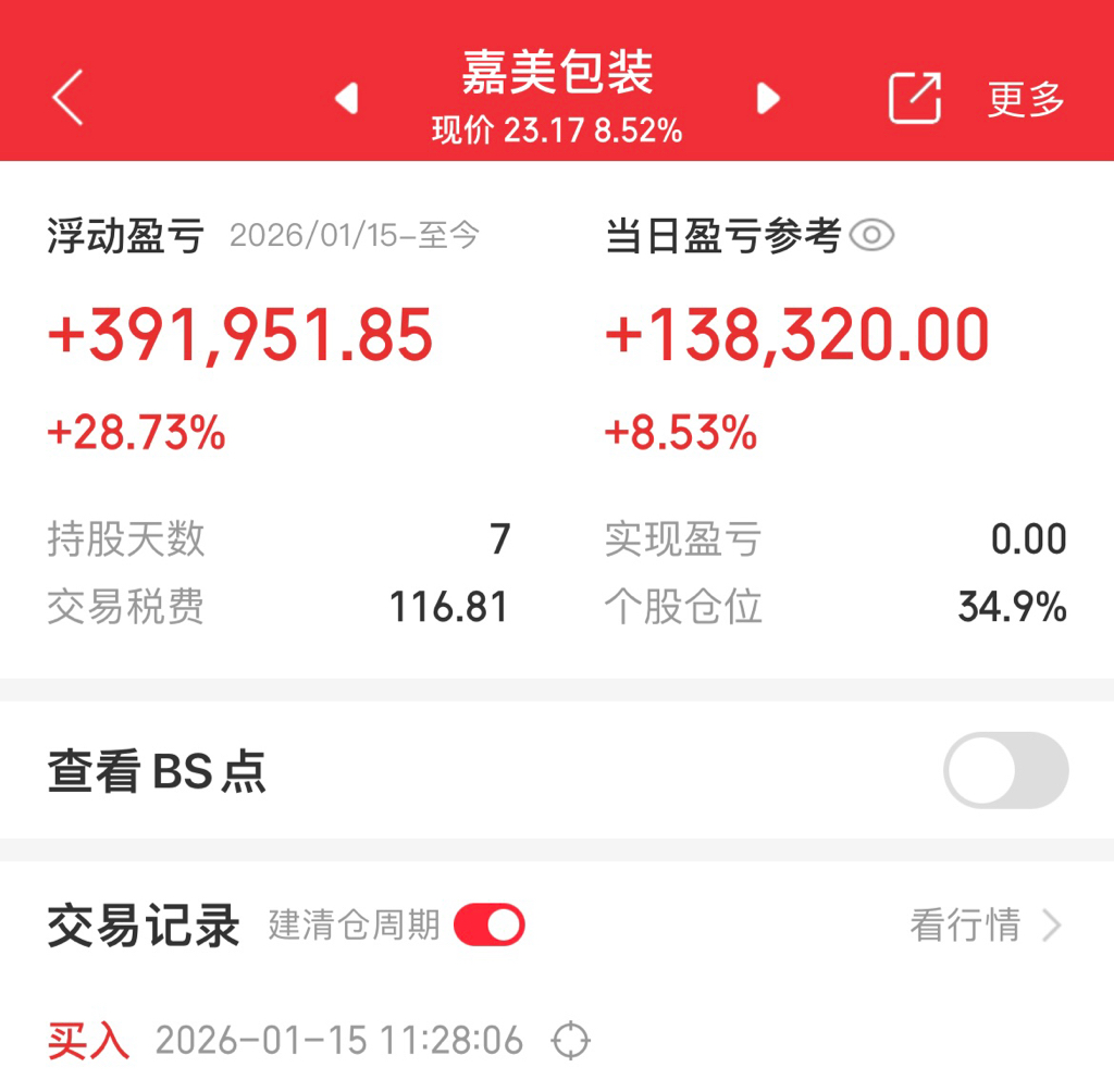 $嘉美包装(SZ002969)$ 小美给了我最大的惊喜,几万股就赚了一百二十几万大洋,这感觉真的好美!追觅是世界上最好的公司,俞总是世界上最帅的男人!感谢俞总,恭祝俞总身体健康,万事如意!俞总万岁万岁万万岁!祝车上兄弟们一起发大财!