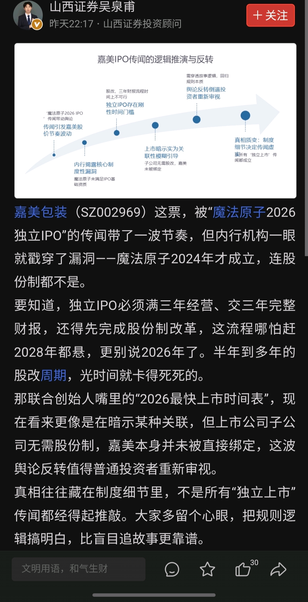 $嘉美包装(SZ002969)$ 这同花顺的投顾老师经得起推敲嘛?涨得高了,就叫大家不要盲目追???