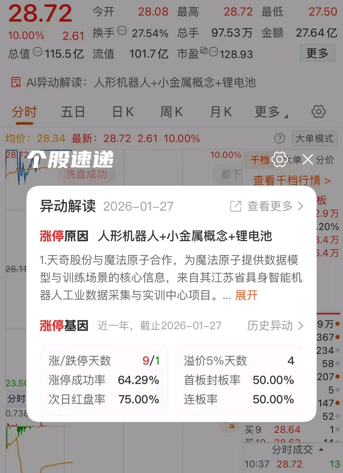 魔法原子机器人概念天奇股份两个板了,而魔法原子核心母公司嘉美也最少被欠2个涨停了