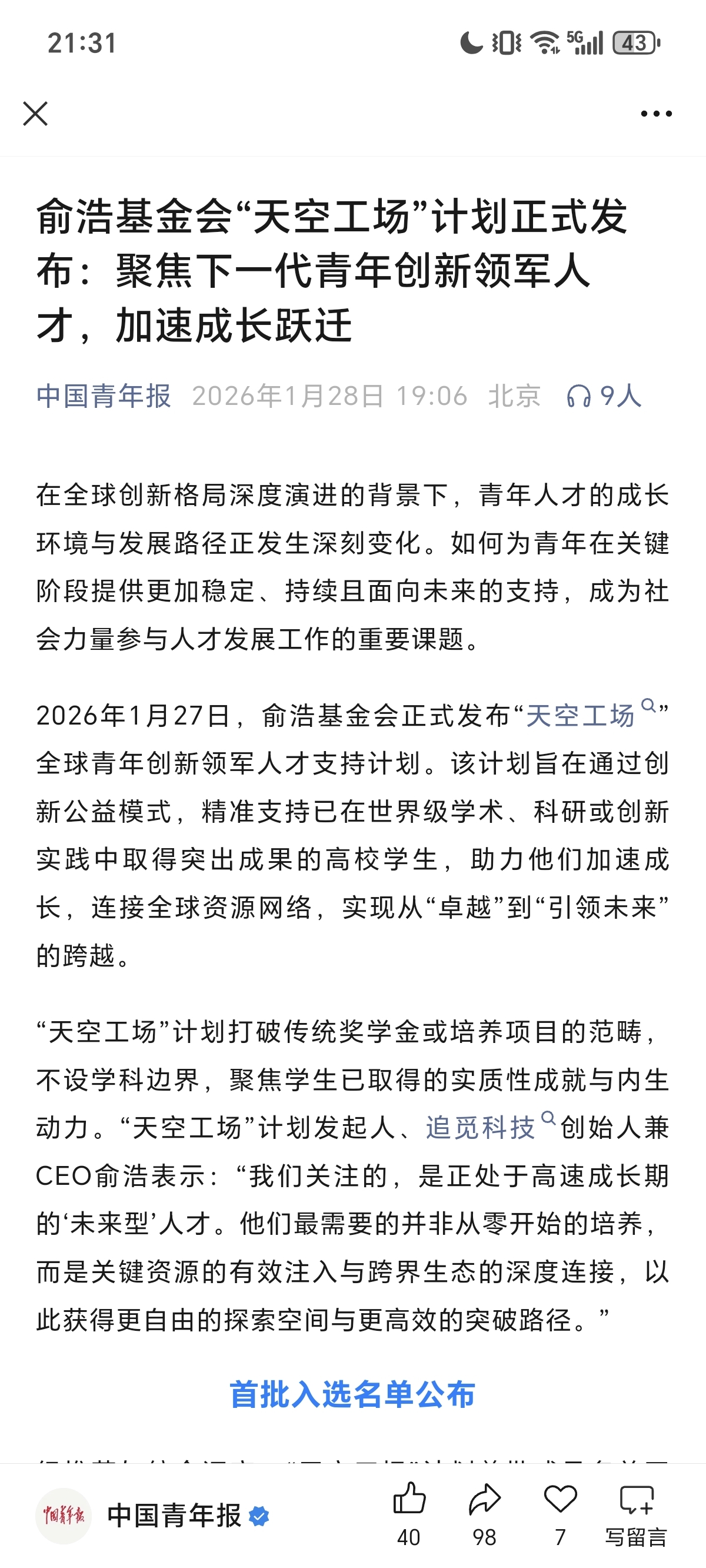 中国青年报都为他发声了所以?
