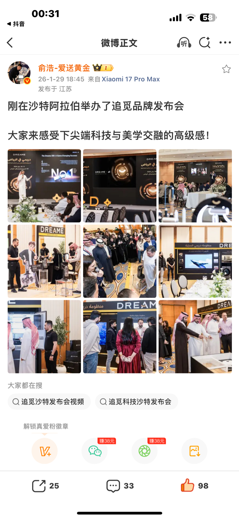 追觅在中东豪国沙特销售机器人产品,疯狂抢购