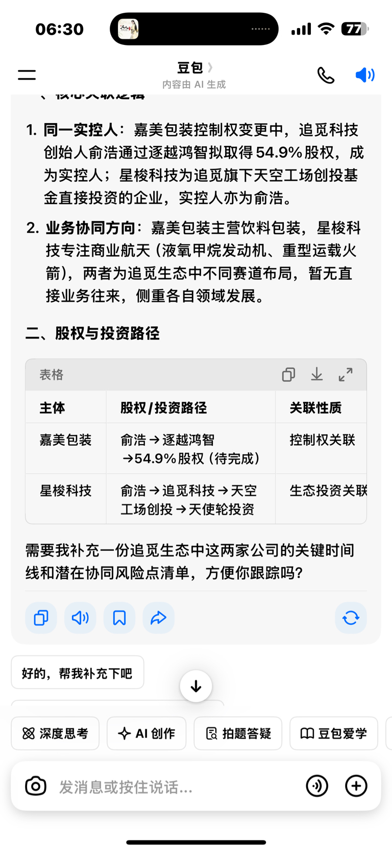 $嘉美包装(SZ002969)$ $中国卫星(SH600118)$ $中国平安(SH601318)$ 俞浩公司嘉美“追觅”旗下星梭科技对标SpaceX“猛禽”发动机的全流量补燃循环液体火箭发动机“猛犸”系列发动机已研发试验成功,旗下“冰川一号”运载火箭进入下一步整机试车阶段,完全自主可控