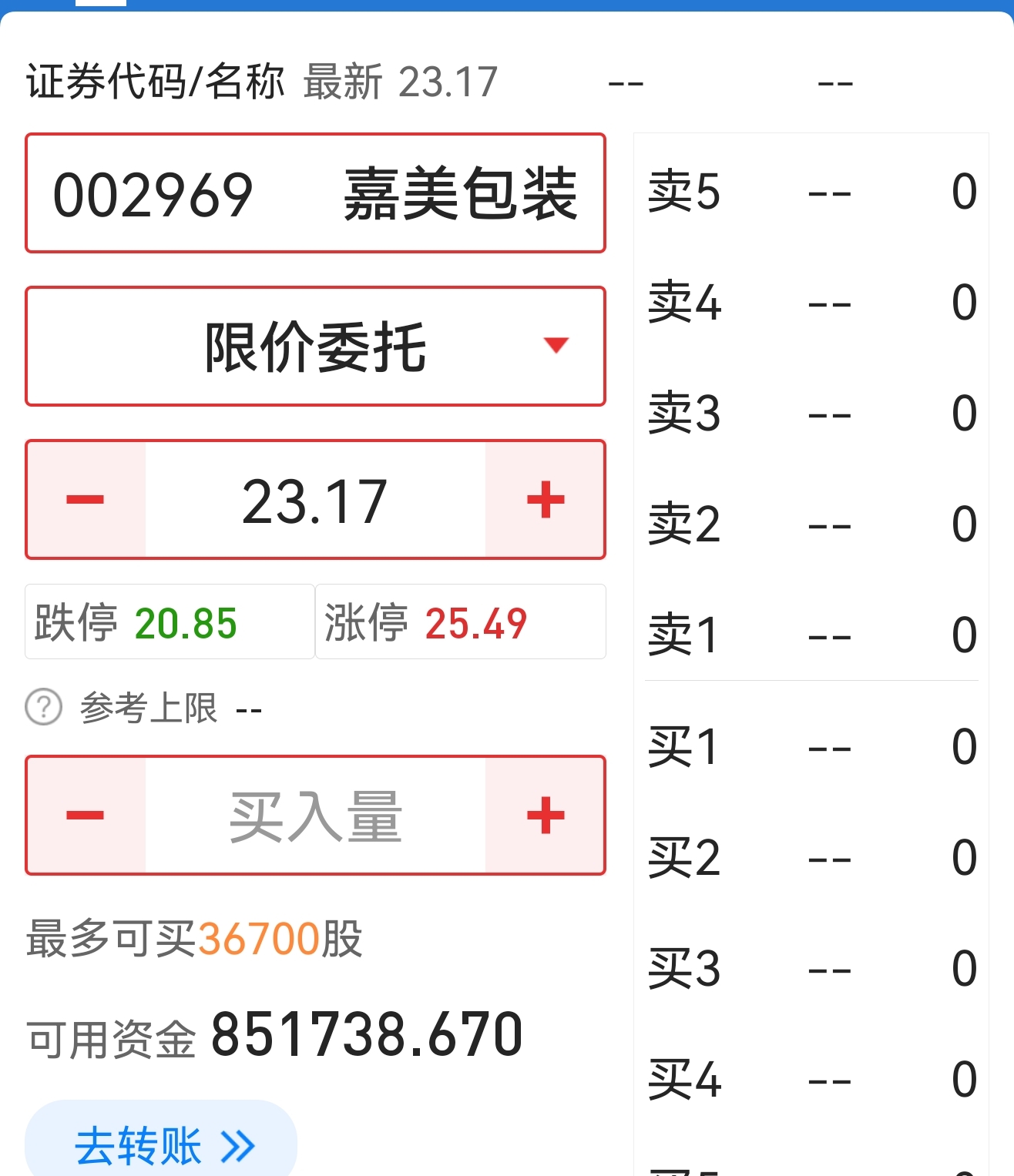 $嘉美包装(SZ002969)$ 资金够买36700股