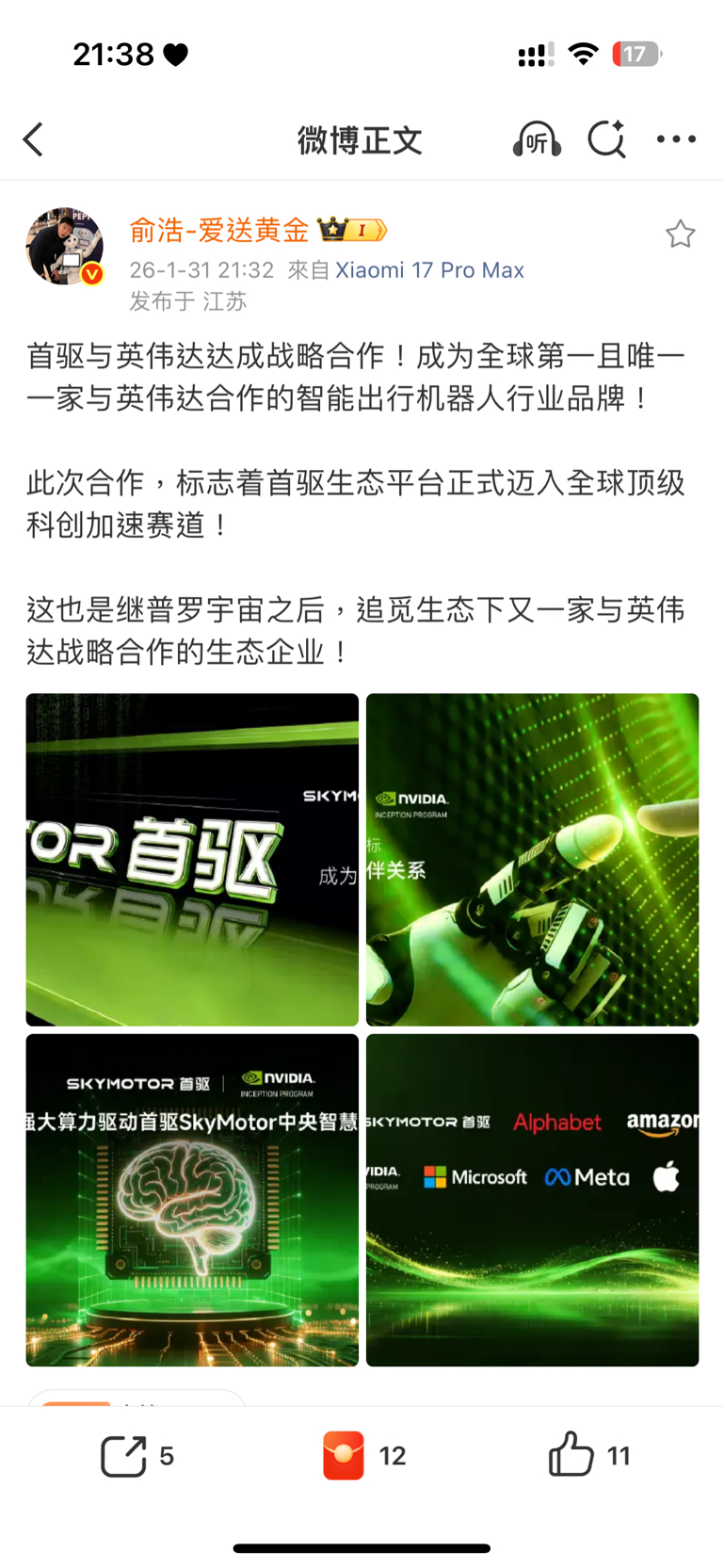 这够炸裂吧:首驱与英伟达达成战略合作!成为全球第一且唯一一家与英伟达合作的智能出
