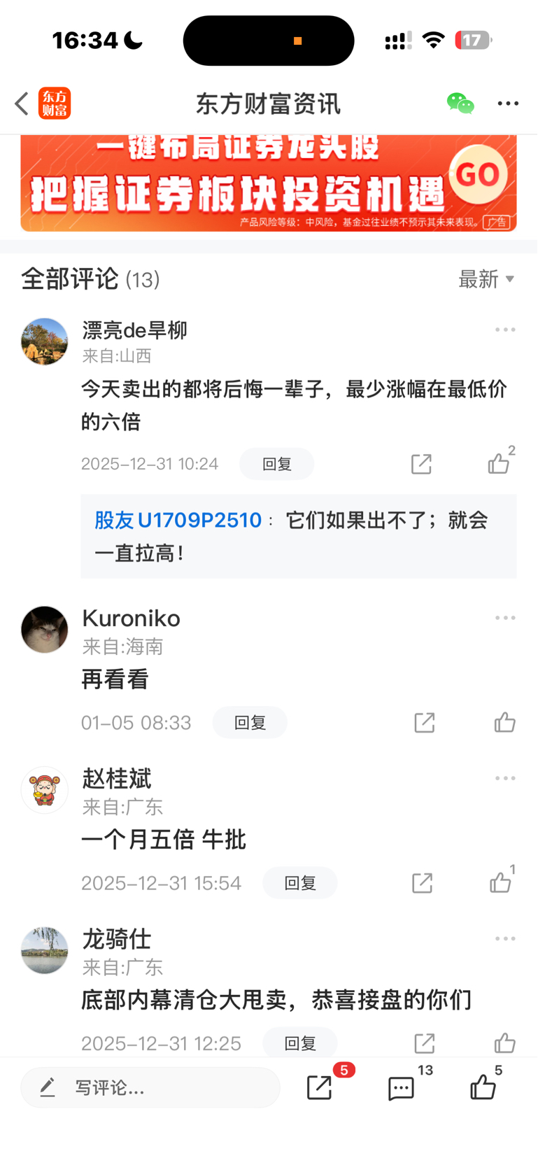 郑重声明:用户在财富号/股吧/博客等社区发表的所有信息(包括但不限于文字、视频、音频、数据及图表)仅代表个人观点,与本网站立场无关,不对您构成任何投资建议,据此操作风险自担。请勿相信代客理财、免费荐股和炒股培训等宣传内容,远离非法证券活动。请勿添加发言用户的手机号码、公众号、微博、微信及QQ等信息,谨防上当受骗!