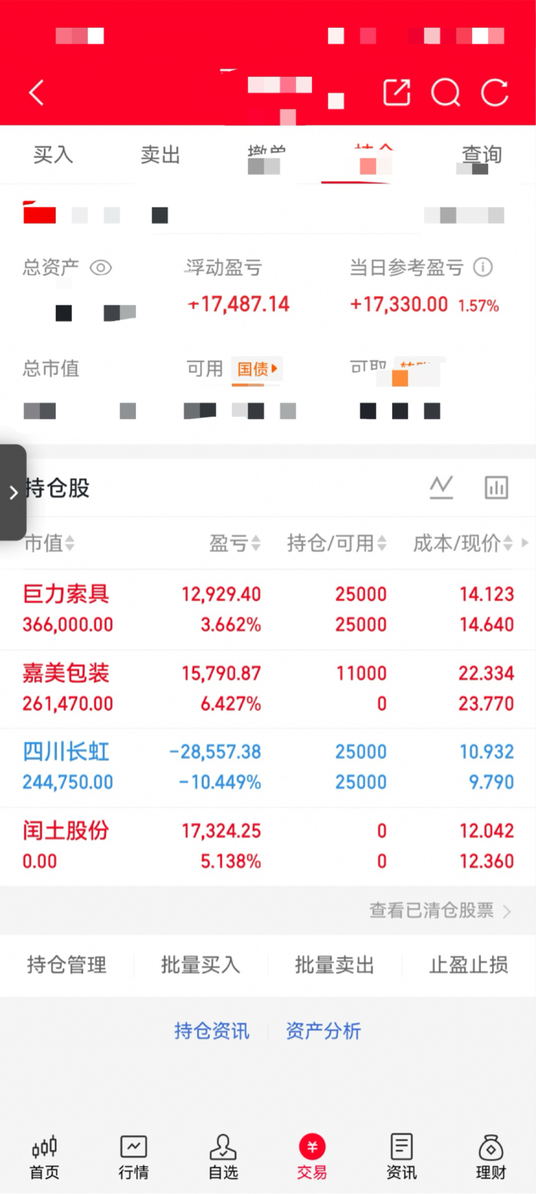 目前持有:$嘉美包装(SZ002969)$ $巨力索具(SZ002342)$ $四川长虹(SH600839)$
