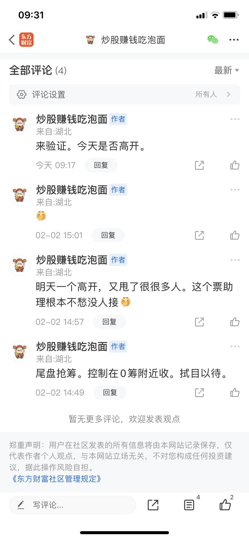 温馨提示: 1.根据《证券法》规定,禁止编造、传播虚假信息或者误导性信息,扰乱证券市场;2.用户在本社区发表的所有资料、言论等仅代表个人观点,与本网站立场无关,不对您构成任何投资建议。用户应基于自己的独立判断,自行决定证券投资并承担相应风险。《东方财富社区管理规定》