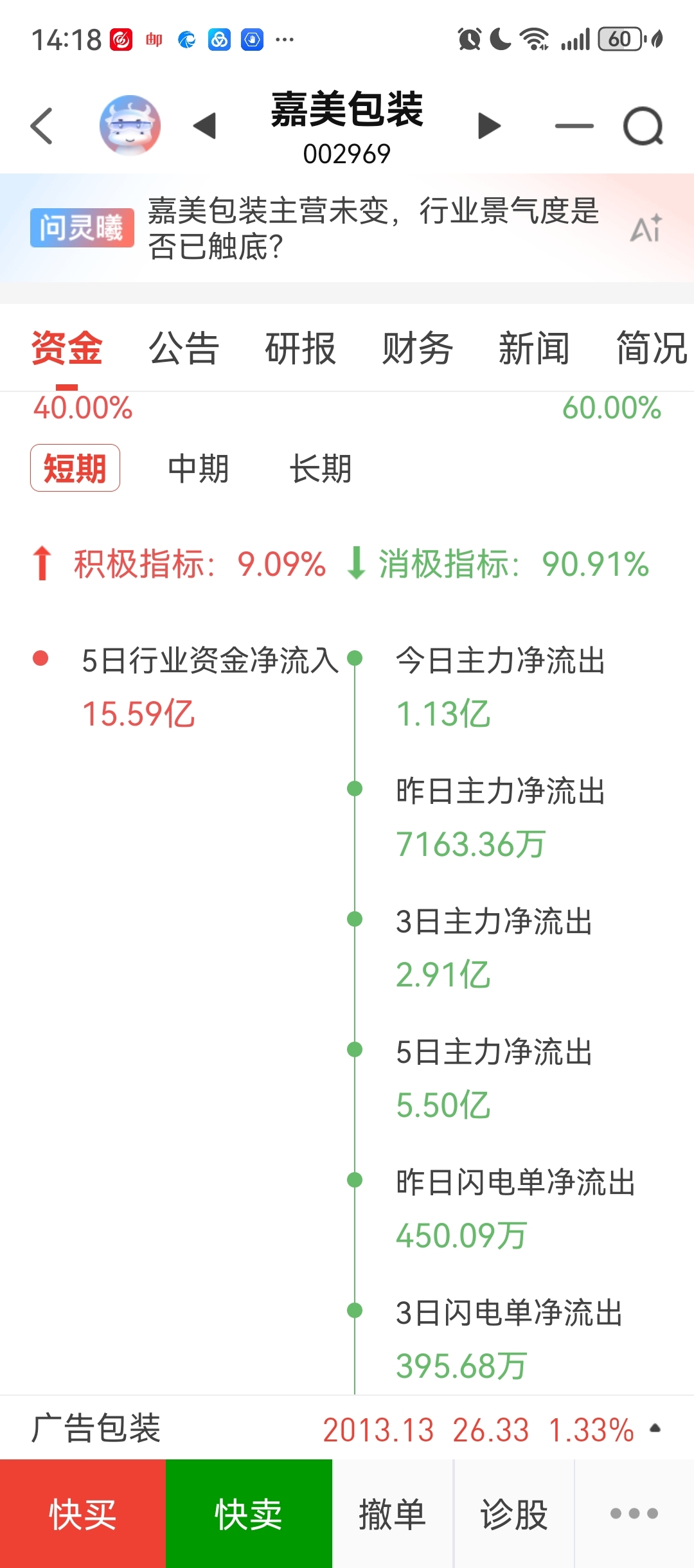 $嘉美包装(SZ002969)$ 主力资金要跑了吗?