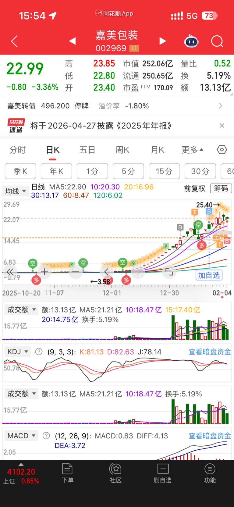 $嘉美包装(SZ002969)$ 看好就拿着,有机会就T一下,跌了就加