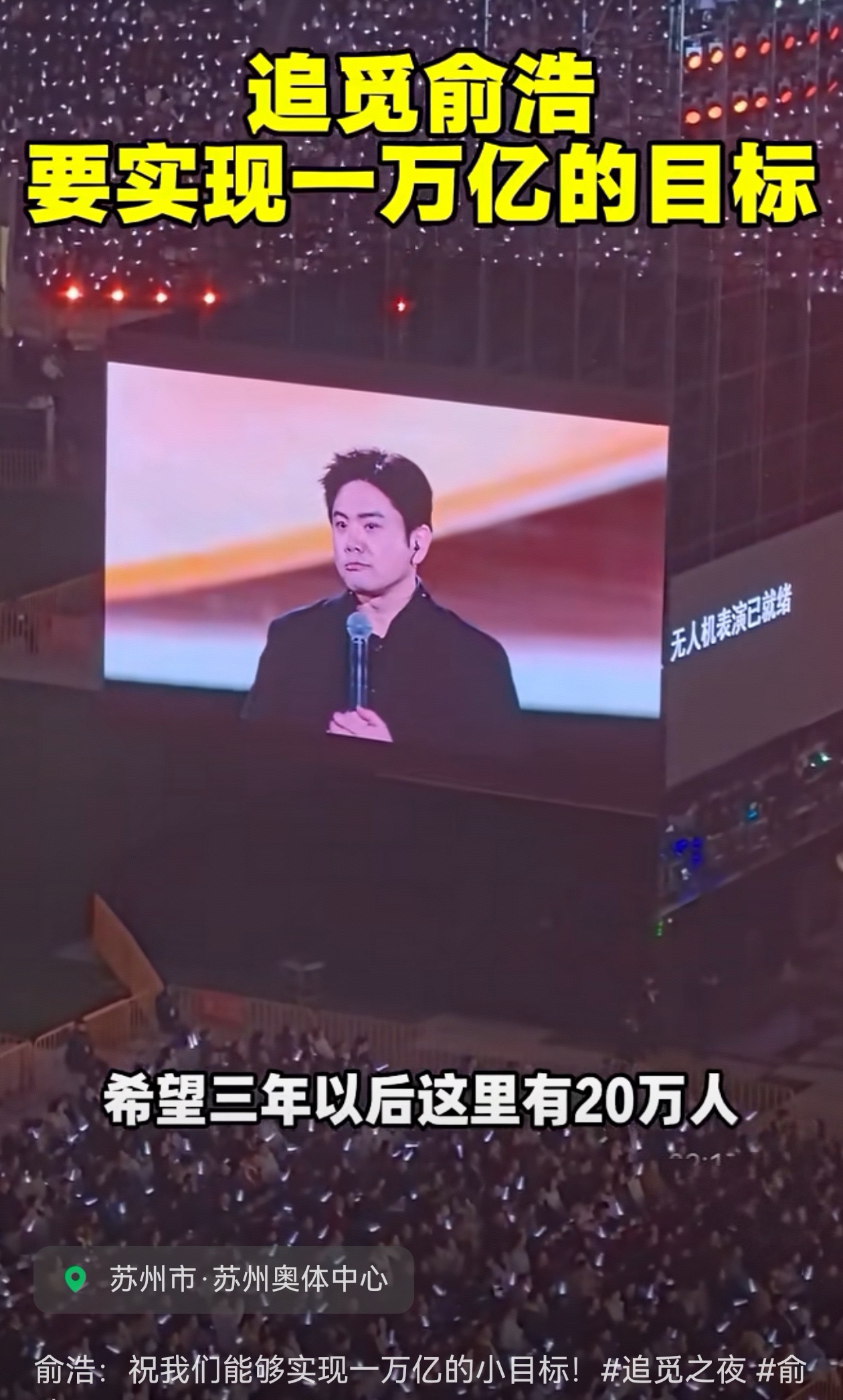 信财神必发财。俞总年会宣布。3年1万亿小目标,现在员工2万3年增长到20万。这个目标俞总会轻松实现的。