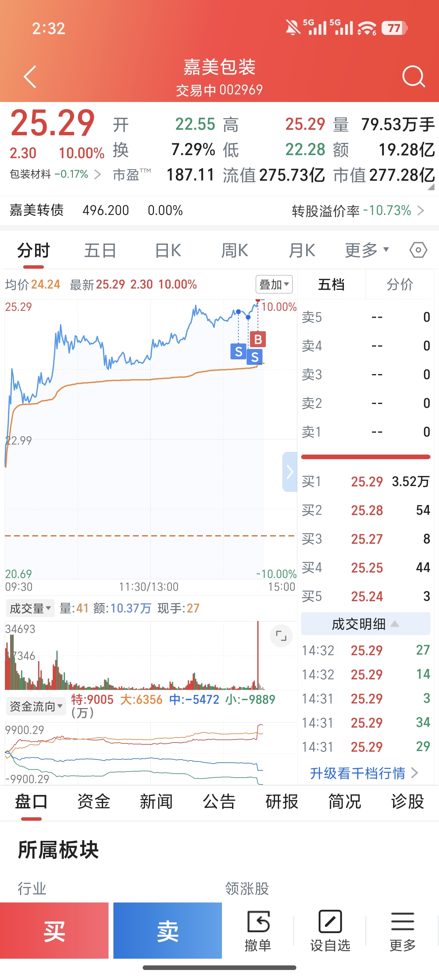$嘉美包装(SZ002969)$ 差点t飞 我去好猛啊