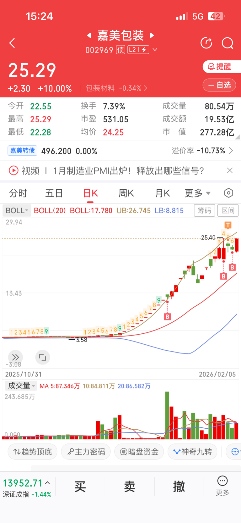 $嘉美包装(SZ002969)$ 继续锁仓,只买不卖
