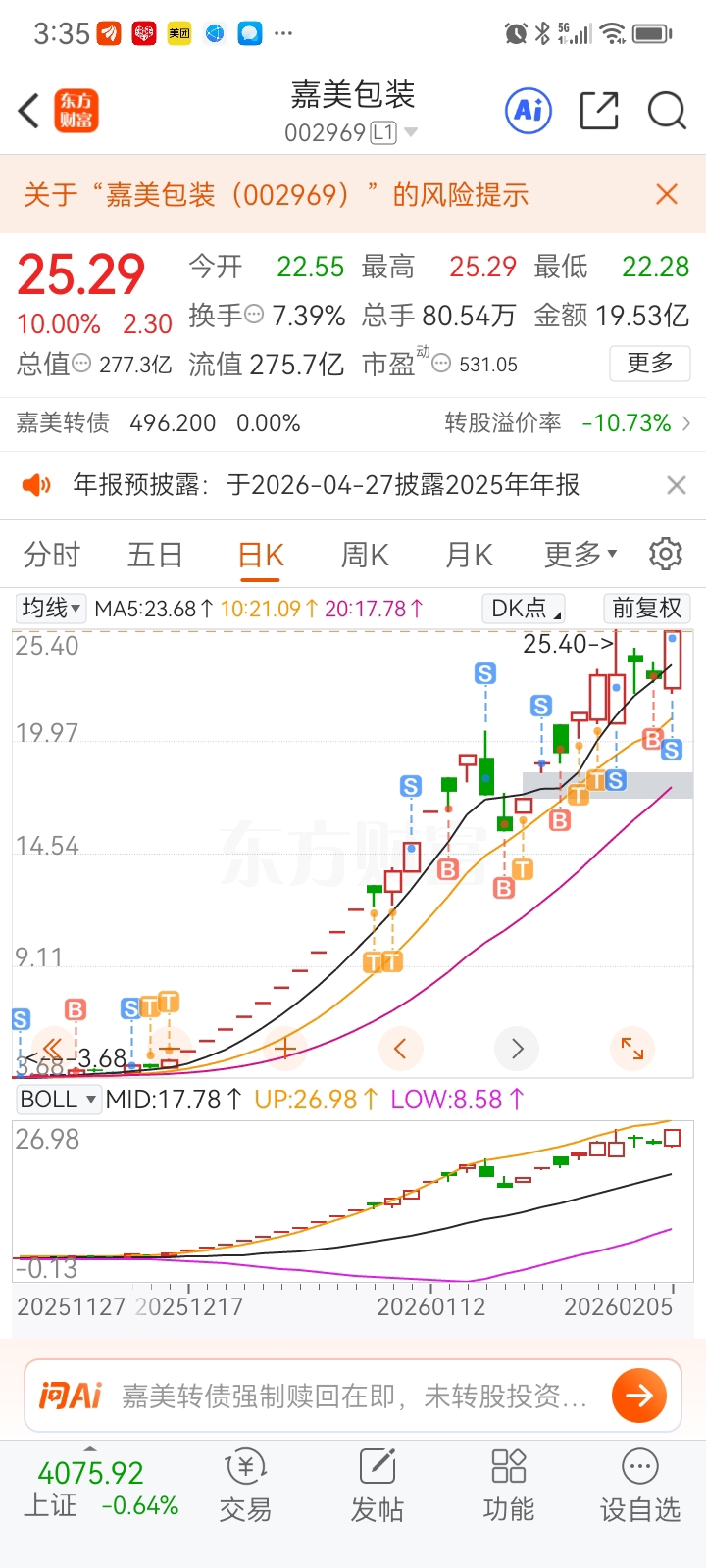 $嘉美包装(SZ002969)$ 想7点再接回来没接回来,有洗走了。