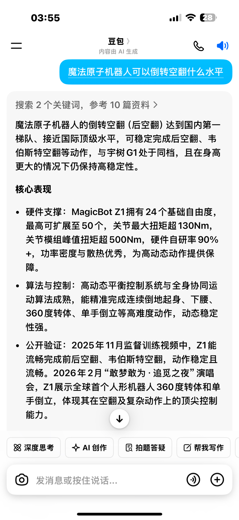 魔法原子可以倒立空翻已经加入第一梯队了,都可以胜过宇树等机器人,明白?