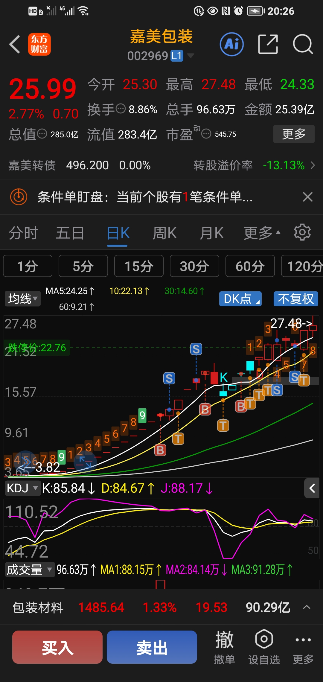$嘉美包装(SZ002969)$ 股票交易要想信自己的判断,对错都是自己的钱,唱多空不影响我持仓的决心,只会加仓不会减少,一定等到自己的目标价,难得一遇的好标的,看好坚定持有,不看好任何时候退出都小赚一点,30元本月是会见到的,100元是要有时间等待的,
