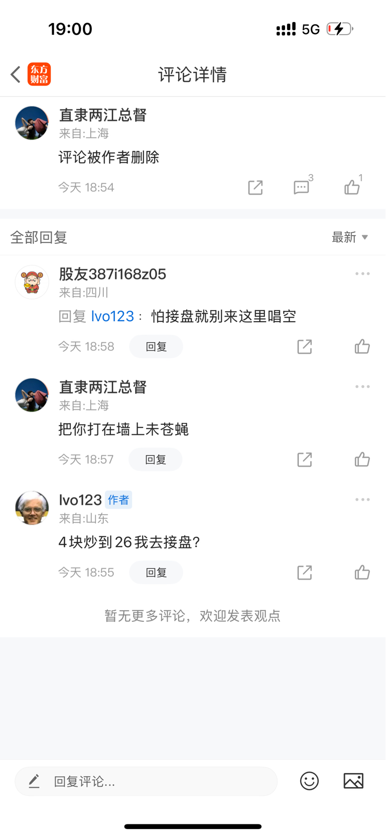 温馨提示: 1.根据《证券法》规定,禁止编造、传播虚假信息或者误导性信息,扰乱证券市场;2.用户在本社区发表的所有资料、言论等仅代表个人观点,与本网站立场无关,不对您构成任何投资建议。用户应基于自己的独立判断,自行决定证券投资并承担相应风险。《东方财富社区管理规定》