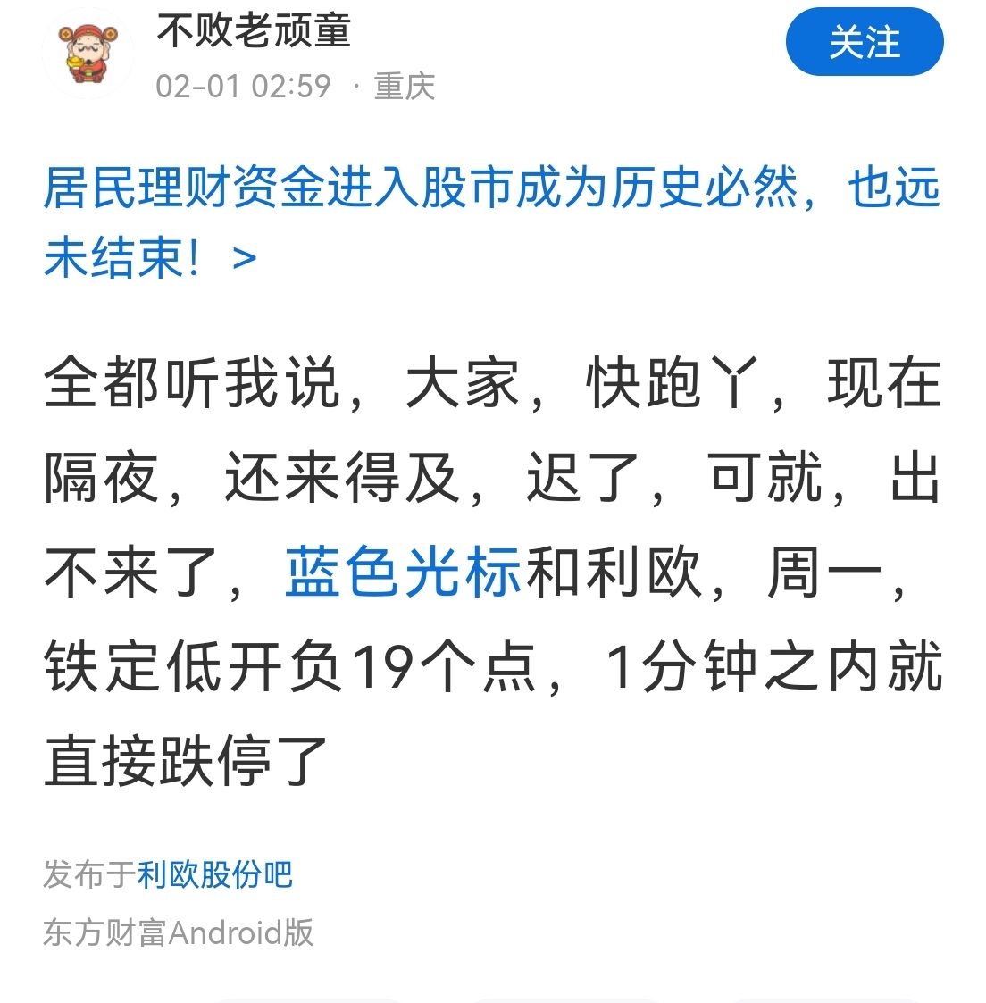 温馨提示: 1.根据《证券法》规定,禁止编造、传播虚假信息或者误导性信息,扰乱证券市场;2.用户在本社区发表的所有资料、言论等仅代表个人观点,与本网站立场无关,不对您构成任何投资建议。用户应基于自己的独立判断,自行决定证券投资并承担相应风险。《东方财富社区管理规定》