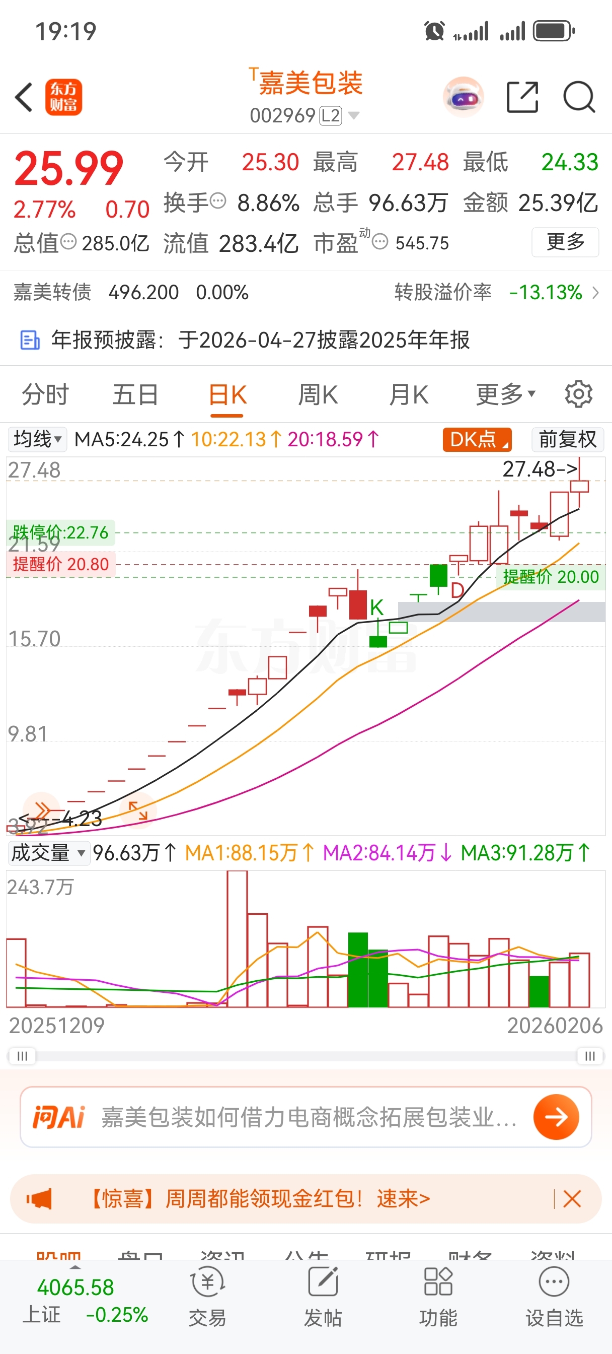 $嘉美包装(SZ002969)$ 明天继续减仓,见好就收