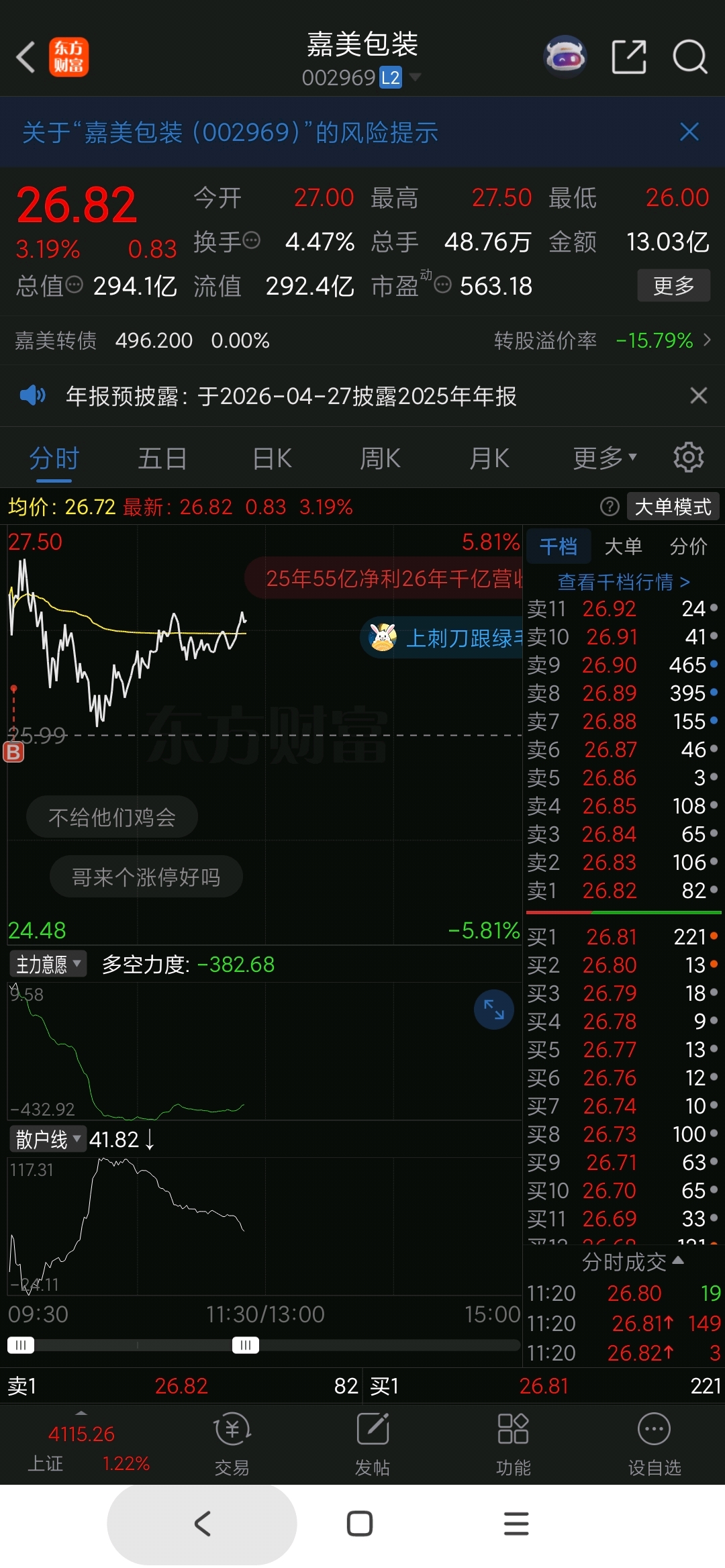 $嘉美包装(SZ002969)$ 仓位上早了,还有低点也不敢加了,因为习惯性买虚空位有价值体现大……