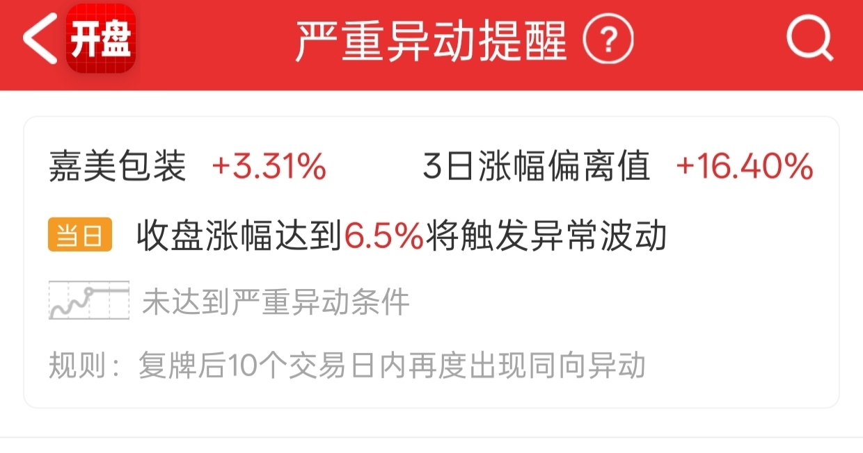 $嘉美包装(SZ002969)$ 大盘涨了,今天可以涨6%