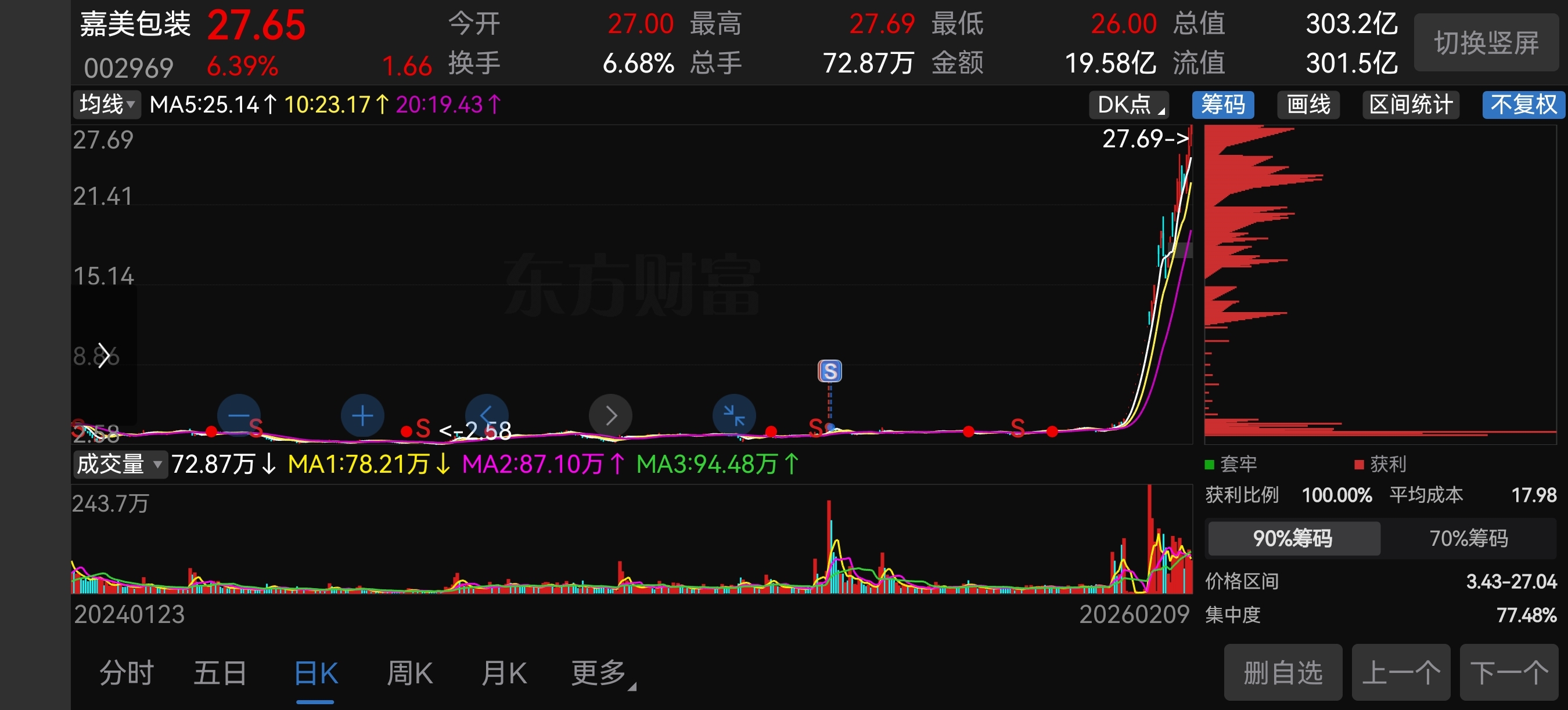 $嘉美包装(SZ002969)$ 曾经买过妖股