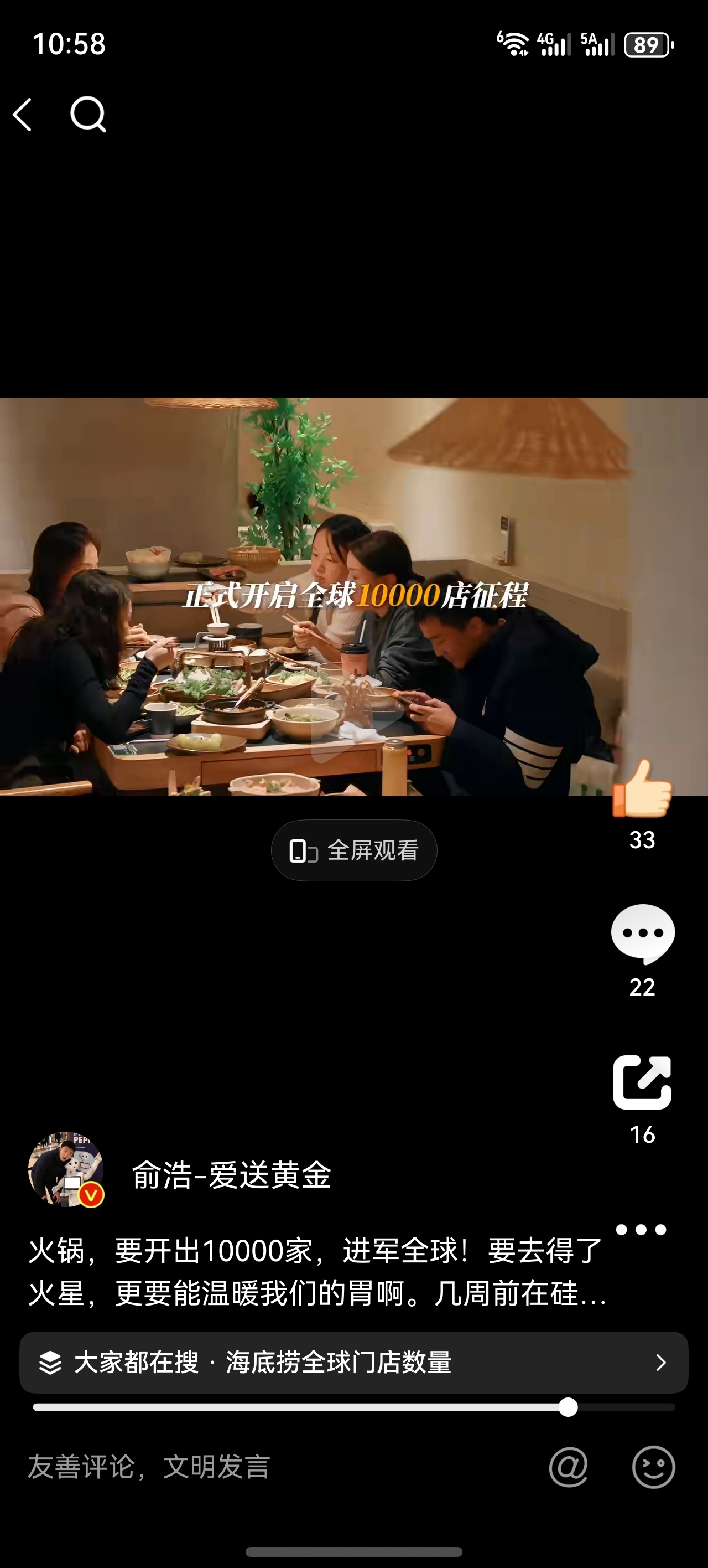 黑子快来俞总又吹牛全球要开一万家火锅店